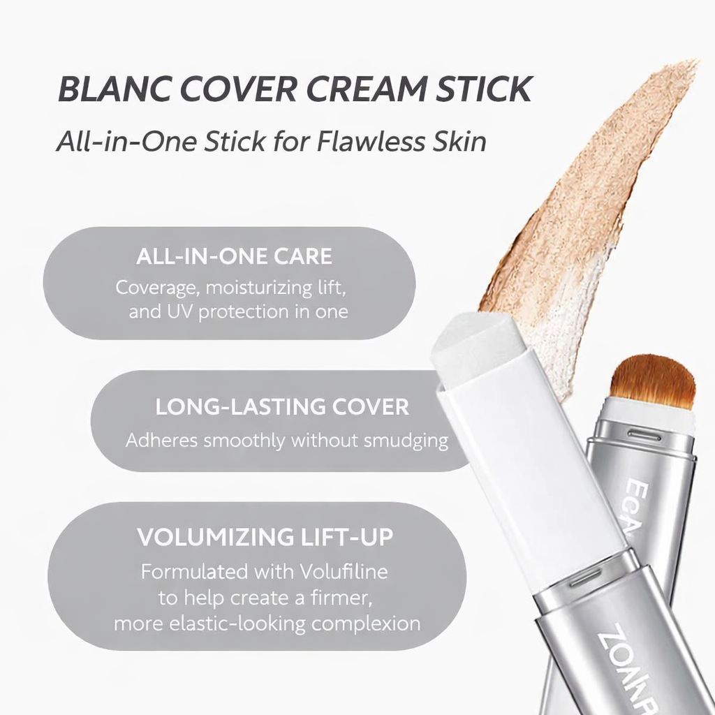 zorinxa Cover Cream Stick smooths and evens skin while staying lightweight and comfortable for a refined, skin-first finish that lasts.